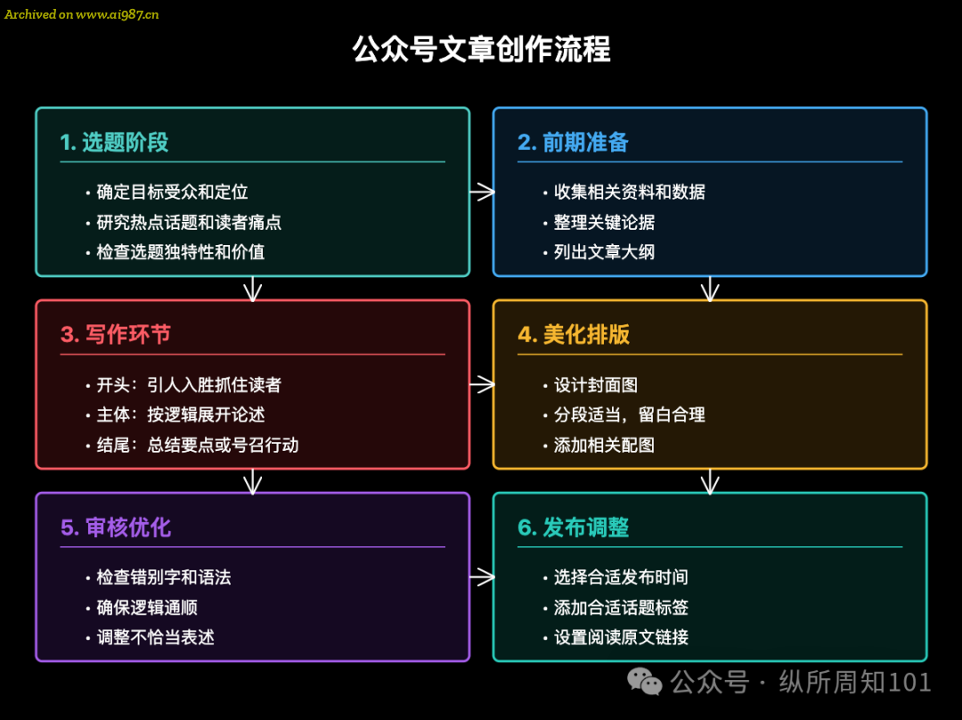 首先,我要知道公众号文章的创作流程: